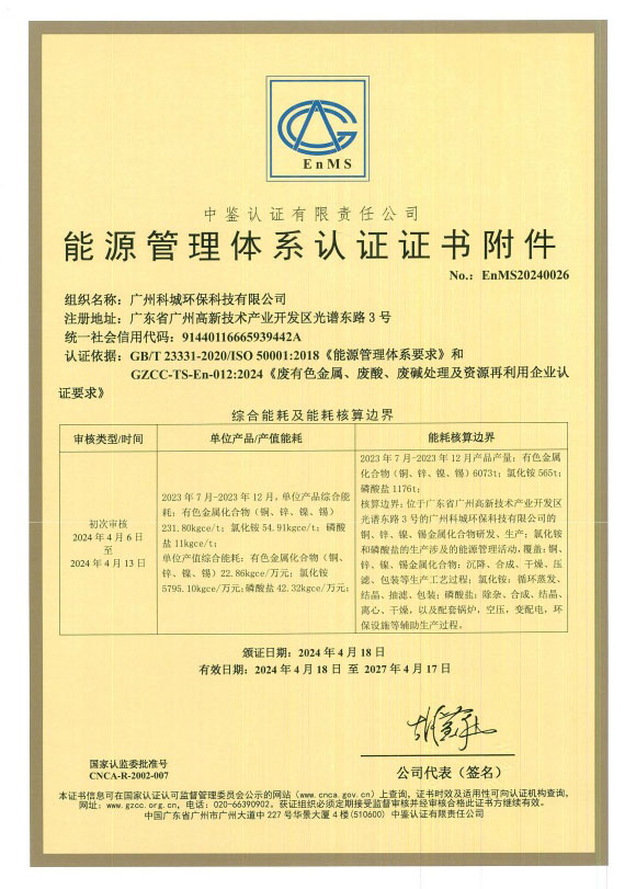 2024年4月18日,科城通过能源管理体系的首次认证,并获得认证证书,证书编号:EnMS20240026。