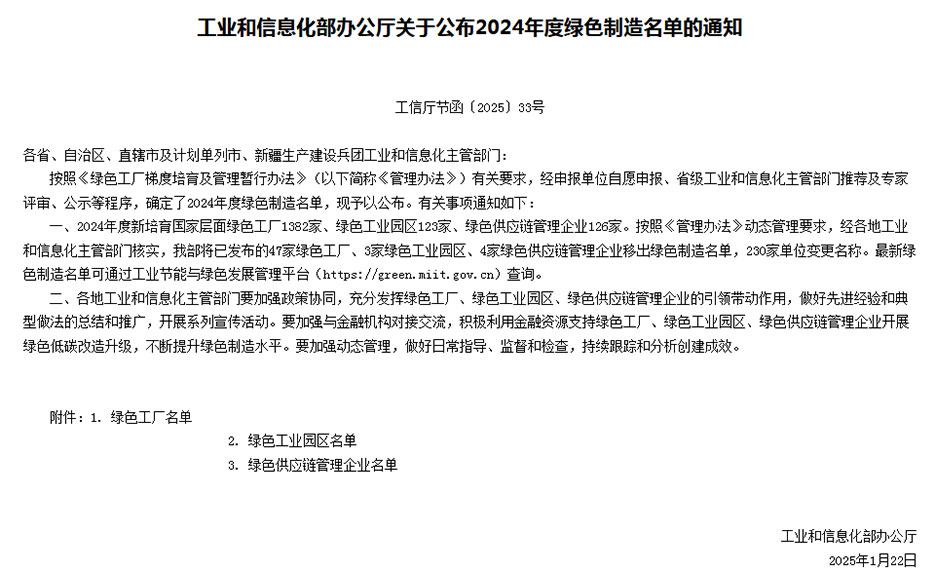 近日,工业和信息化部正式公布了2024年度绿色制造名单,科城成功获评为国家级绿色工厂。